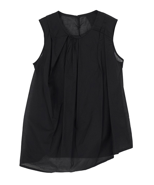 適度な光沢感と清涼感が特徴のコットンローン素材を使用。ほどよい抜け感とアシンメトリーなシルエットが特徴。 一枚ではもちろん、ハイツイストコットンカーディガン(ZU71KO107)とのレイヤードスタイルもおすすめです。 この製品は独特な風合いを出すため、製品染めを行っております。1点ごとにサイズや風合い等、特徴が異なりますのでご了承ください。