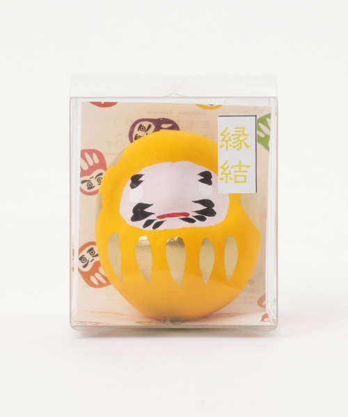 福島県白河市の名産「白河ダルマ」をカラフルな豆サイズに。ひとつひとつ色に意味があり、好きな色や叶えたい意味で選べます。コロンとした小さなフォルムが可愛らしく、玄関や棚・テーブルにも手軽に飾りやすいサイズ感。贈り物にもおすすめです◎ --- JAPAN MADE / FUKUSHIMA --- だるまもり(守り) DARUMA Talimans 色ごとに意味を持ったお守り達磨。「神頼み」ならぬ「ダルマ頼み」にどうぞ。 ●赤 : 開運 / RED better fortune ●白 : 目標達成 / WHITE goal achievement ●黄色 : 縁結び / YELLOW marriage ●橙 : 子宝 / ORANGE to be blessed with children ●緑 : 健康 / GREEN health ●青 : 学業 / BLUE academic achievement ●紫 : 長寿 / PURPLE longevity ●黒 : 繁栄 / BLACK prosperity 願い事をする際は、ダルマの左目に目を入れ、成就したら右目を入れるという風習があります。(地域によって異なる場合もあります。) 商売繁盛や家内安全、健康祈願は最初から両目を入れるのが一般的とも云われています。 ◆カヤ◆ 古くから伝わる日本の伝統と新しい文化の融合。 「新しいカタチの日本」に出会える倭物ブランド【カヤ】 「文明開化」をテーマに、倭モダンで色彩あふれる刺激的な和雑貨を提案していきます。 ※こちらの商品は1点1点職人による手作り・手描きとなります。その為、形や色合い・模様など若干異なる場合がございます。あらかじめご了承ください。 <価格改定のお知らせ> 2024年4月9日より、素材費高騰の諸事情により価格改定をさせて頂きます。 商品タグに記載している価格につきまして、旧価格のものが混在している場合がございます。 ご了承くださいますよう、お願い申し上げます。 Amina Collection Co.,LTD.