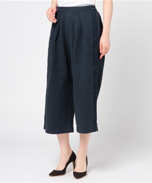 サイドに同色のラインを使ったトレンドのパンツです。麻混の爽快感があるタッチではきやすく、ゆったりとしたシルエットでストレスフリー。定番人気のワイドパンツもライン入りなら変化が出ておすすめです。