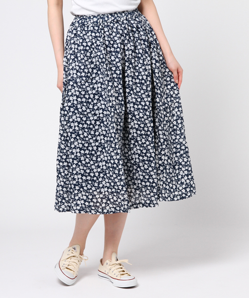 細かな花柄をちりばめて、どこか懐かしいレトロな雰囲気を感じる花柄のロングスカート。柔らかなコットン生地をたっぷり使用しているので落ち感のある女性らしいフレアシルエットに仕上がっています。
