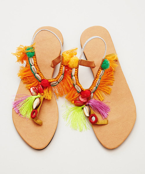 インパクト大!なエスニックサンダル★フリンジやシェル、カラフルなビースで夏の足元を彩ります♪ヒッピー&フェススタイルにも大活躍◎ ※こちらの商品は1点1点職人による手作りとなります。その為、形や色合いなど若干異なる場合がございます。あらかじめご了承ください。 ※サイズには個人差がございます。あくまで目安にお考えくださいませ。 Amina Collection Co.,LTD.
