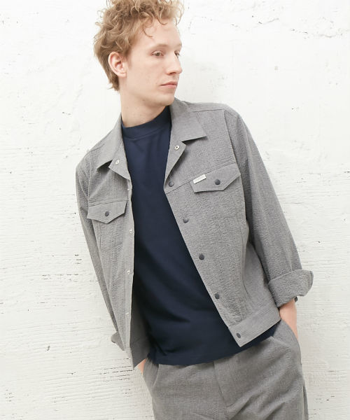 繊維産業として栄えている岐阜県で生産した日本製の上質なGジャン。シアサッカー生地の裏地無し仕様となりますので、カーディガンのような感覚で軽く羽織って着用できます。ボタンはスナップボタンでカジュアルに仕上げています。 シャツで合わせれば上品なスタイルに、Tシャツやカットソーで合わせればカジュアルなスタイルに仕上がります。