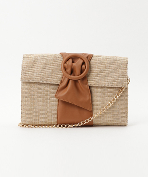 リネン混素材で仕上げたショルダーバッグ。チェーンベルトを取り外すことで、クラッチバッグとして2WAYでお使い頂けます。 シンプルなデザインながら、フロントのリボンデザインが手軽に着こなしのアクセントになるひと品。内側に仕分けポケットを採用することで、収納性に優れているのも特長。 お値段も手頃ですので、ご自身用は勿論、プレゼントにもオススメです。