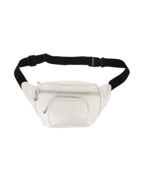 モード感漂うレザー調素材で仕立てたベルトバッグ。フロントと背面にポケットが付いていて機能性はバツグン。ちょっとしたお出掛けに使いやすい便利なアイテムです。