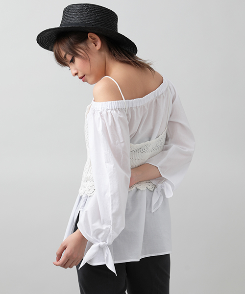 トレンドのリボンとオフショルを合わせた即戦力のトレンドアイテムが到着!袖口にリボンのアクセントを取り入れた爽やかな雰囲気の一枚!オフショルダーで子供っぽさを減らした事で大人の方にも取り入れて頂きやすい一着です!上品なお色目の4色も好みに合わせて選べれる嬉しいポイントです!