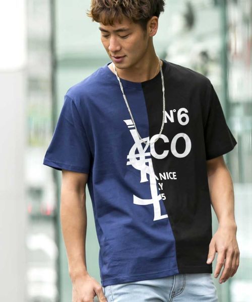 こんな遊び心たっぷりなTシャツを待ってました!! センタ-で切り替えられたバイカラ-Tシャツに、洒脱で遊び心たっぷりなパロディ-プリントを施したTシャツ!! トップスがインパクト大だから、コ-ディネ-トはいつものデニムパンツでバッチリキマりますよ!! バックスタイルのバイカラ-もさりげなくカッコいいですよ!! 程よい厚さのコットン100%の素材だからヘビロテにもってこいですね!!