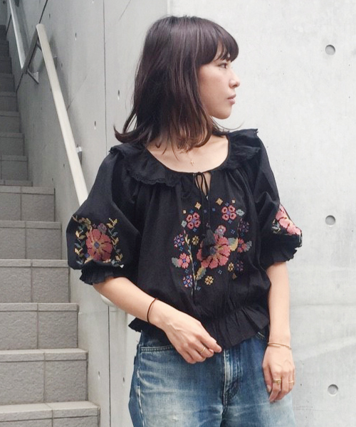 着心地軽いコットンボイルを使用したこの時期にピッタリのアイテムです。ボリューム感のあるデザインですが繊細な生地を使用しているのでイヤな張り感はなくエアリー感のあるシルエットに。展開色によって印象の異なる刺繍の配色もポイント。デニムのワイドパンツと合わせたスタイリングがトレンド感があってオススメです。