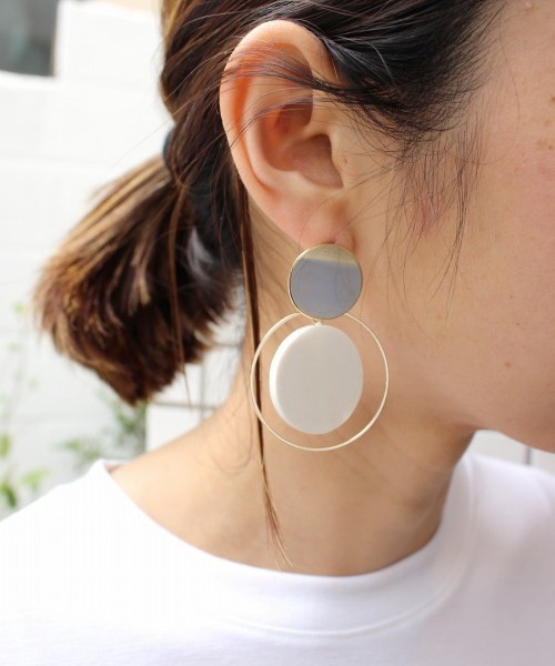 ナチュラルになりがちなウッドは白黒カラーにしてメタルを組み合わせることで、上品なモード感を演出します。 大ぶりなデザインなので、髪をアップにして耳元をポイントしたスタイルがお勧めです。 耳元で揺れるピアスは女性らしさを際立たせてくれます。 カジュアルスタイルにもフェミニンスタイルにも合わせやすいデザインです。 ★同じデザインのイヤリングもご用意があります(CA-715) CIBRE(シブレ) CIBREとはフランス語で的、自然体で流されない私だけの可愛さ、 いくつもの顔を持っている大人の女性に向けてコーディネートを 重視したアクセサリーブランド