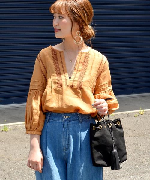 涼しげなリネン素材の刺繍ブラウスが登場♪スキッパー型ですっきりと見えるデザインのブラウス。袖がありますがリネン素材なので風通しが良く、真夏まで涼しく着ていただけます。 ※末永く愛用頂く為に、アテンションタグ・洗濯ネームを必ずご確認の上、着用又はお取り扱い下さい。 ※画像の商品はサンプルです。 実際の商品と仕様、加工、サイズが若干異なる場合がございます。
