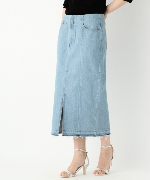 国内外で定評のあるカイハラデニムを使用。 アパートバイローリーズでシルエットがキレイ!と 人気のロングタイトスカートをリメイク風デザインにしたアイテムです。 美シルエットはそのままに、こなれ感ある雰囲気で 大人のカジュアルコーデにオススメのアイテムです。
