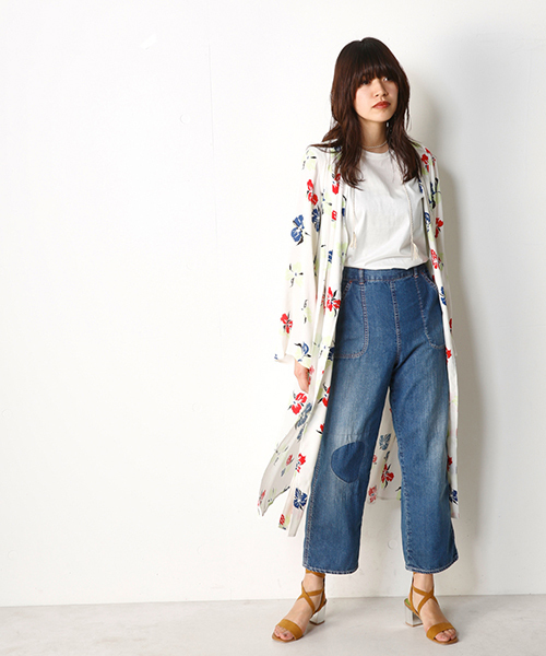 水に流れるような南国の蘭をイメージして作られたオリジナル柄でレーヨン混の落ち感のある素材を使用し、フロントの裾部分を結んでも着られる2WAY仕様になっています。着るだけでインパクトのあるアイテムなのでシンプルなインナーにデニムスタイルで合わせるスタイリングがおすすめです。