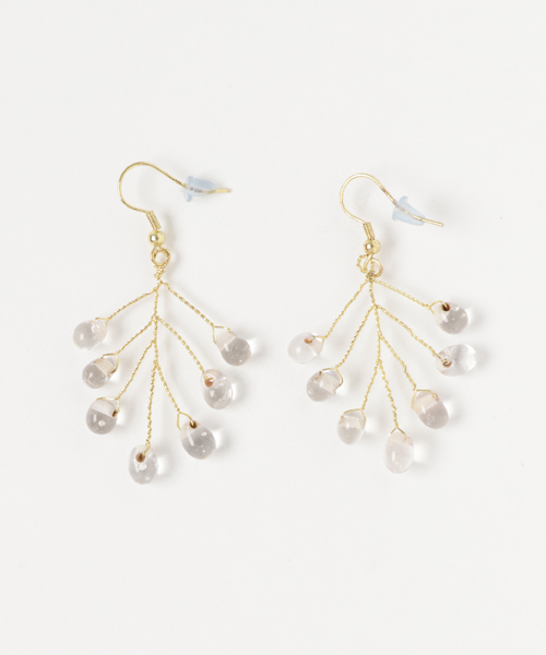 朝露を纏った草木をイメージしたモチーフ。動くたびに揺れる可愛らしいデザインのピアス。熟練した職人さんによるワイヤーワークでつくられたハンドメイドのぬくもりが感じられるアクセサリーです。 ※こちらの商品は1点1点職人による手作りとなります。その為、形や色合いなど若干異なる場合がございます。あらかじめご了承ください。 Amina Collection Co.,LTD.