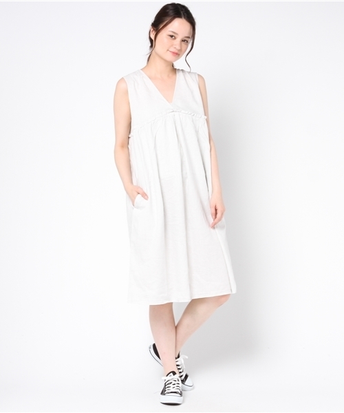 これからのシーズン活躍するざっくりタイプのノースリワンピース。胸元のシャーリングがシルエットにメリハリをプラスするポイントです。カーデやガウンを羽織ったり、インナーにカットソーなどを着てレイヤードを楽しんだりと、シンプルだからこその着回し力が魅力です。