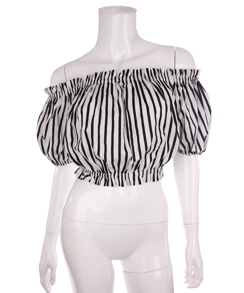 ♡Bobon21 2017S/S New Collection♡ ガーリーなストライプのパフトップスが新登場 肌を魅せたスタイルにふわふわシルエットがとてもキュート 裾はゴム仕様なので、丈感を調節して、ヘソ出しルックも可愛いよ ショーパンやデニムと合わせて、かっこかわいいガーリーコーデに