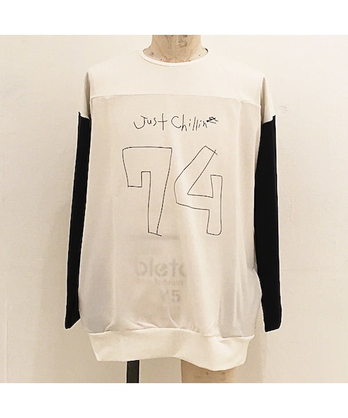 FOOTBALL-Tを現代的にUPDATE。(74番にあまり意味はないです。) キュプラをジャージ素材にする事でキュプラ特有のとろみは残しつつ、しわにもなりにくくストレスフリーな生地です。キュプラは元々水分量が多い繊維なので、肌接触冷感も体感して下さい。