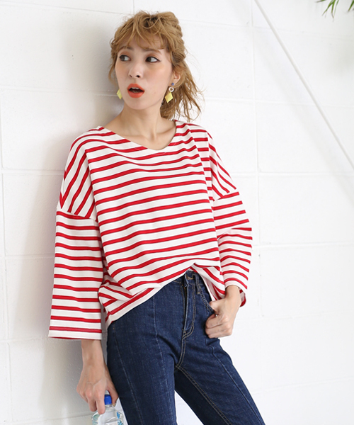 オーバーサイズで抜け感のある女っぽいフォルムが魅力のボーダーカットソー。きゃしゃ見えするネックラインにこだわり、2WAY仕様のデザインに仕上げました。上質なカリフォルニアコットンを使用し、肌触りの良い柔らかな着心地も魅力。カジュアルな印象が強いボーダーも、シルエットで女性らしく見せてくれる優秀トップス! ※モニター・環境等により実際の商品と多少色味が異なって表示される場合がございます。 予めご了承をお願いいたします。