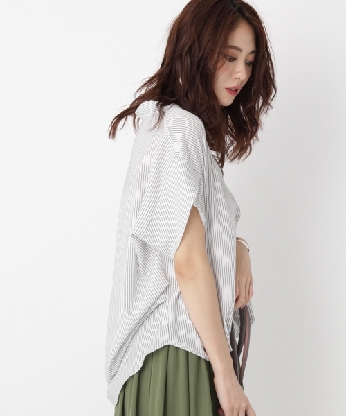 アンデミュウの人気のスソタックブラウスの半袖Ver.です。 ヌケエリとインしたように見えるタックが入ったシルエットのきれいなアイテム。 パンツでもスカートでも合わせやすく、ONにもOFFにも使える優秀ブラウス! 1枚でもさまになる、こなれブラウスです。