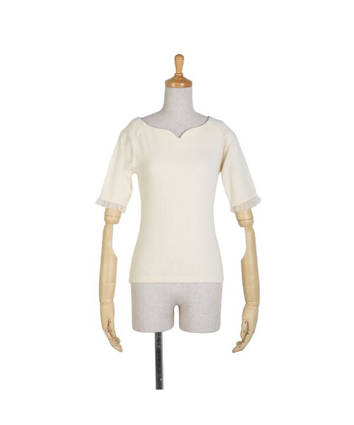 ハートカットの衿ぐりがポイントのテレコカットソー。 ボディに程よくフィットする美しいシルエットや袖のチュールフリルがまるでバレリーナのような印象です♡ ボトムを選ばないシンプルなデザインで、色違いで欲しくなるアイテムです。 MATERIAL: 本体 綿95%ポリウレタン5% 別布 ポリエステル100% made in China サイズ着丈胸囲袖丈 Free 55cm72cm31cm 【ご注文確定前に必ずご確認ください】 いつもF i.n.tをご愛顧頂きありがとうございます。 STORESの在庫掲載については、F i.n.t代官山店と在庫を共有しているため、在庫更新のタイミングにより在庫切れの場合やお届けまでお時間を頂戴してしまう可能性がございます。 商品を他店舗よりお取り寄せの場合には、通常よりお届けまでにお時間がかかる場合がございますので、恐れ入りますが予めご了承ください。