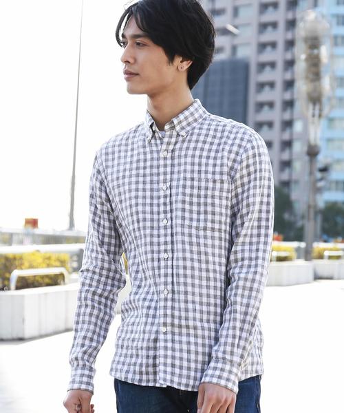 フレンチリネンを使用したカジュアルシャツです。柔らかな生地感と清涼感のあるギンガムチェック柄の色味がいい感じ。1枚着としてはもちろん、タンクトップやTシャツの上から羽織ったスタイルや、袖口をロールアップさせたスタイルもおすすめです。グレーのメイン画像のモデル:身長178 B88 W72 H86 着用サイズ:Mネイビーのメイン画像のモデル:身長178 B88 W72 H86 着用サイズ:M商品の詳細ディテール紹介画像のモデル:身長183 B93 W74 H93 着用サイズ:L~グリーンレーベル リラクシング各店へのセール品の在庫のお問い合わせに関して~ セール品の在庫の有無に関して店舗ではお答えできかねる場合がございます。 また、セール期間中の店舗でのセール品のお取り置きはお受けいたしておりません。予めご了承下さい。 品名:KT FRENCH/LI TOP/GGM BD 品番:3211-199-2221