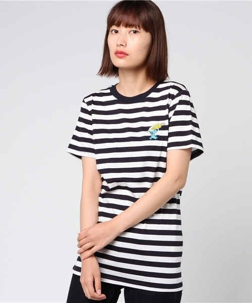 今季は、【エビ】と【とうもろこし】の刺繍が入ったPUNYUSのSS定番アイテム☆ シンプルなTシャツなのでどんなコーデにも使え、PUNYUSのオリジナルキャラクター!! いただきマウスのワンポイントの刺繍が目を引く便利なアイテム♪