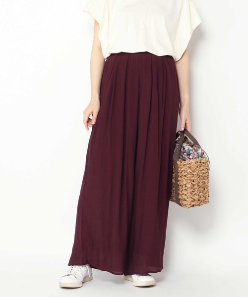 落ち感、清涼感のある素材で仕上げたワイドパンツ。 分量のあるタックボリュームと風合いが作り出すドレープが、上品な中にもリラックスしたスタイルを演出します。 軽やかでウエストゴムのためストレスフリーな穿き心地です。 ◆ 丈感が選べるサイズ展開 ◆ こちらの商品はお客さまの身長に合わせて着丈がお選びいただけます。 身長が小さめ~平均の方や、少し足首を見せたい方はMサイズ。 身長が大きめの方や、かかとが隠れるフルレングス丈で履きたい方はTM(トールM)サイズがおすすめです。 手洗い可、ドライクリーニング可(F)、ウェットクリーニング(W)