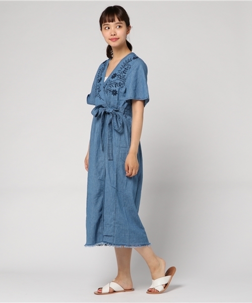 腰紐を結んでワンピース風に、前を開けて羽織りにとアレンジ自在なワザありガウン。デニム生地に繊細な刺繍が映えるトレンドデザインです。シンプルにTシャツの上から着るだけでも雰囲気抜群。ガウン人気の高い今シーズン、ありそうでなかったデニム生地ならちょっぴり差を付けられますよ♪