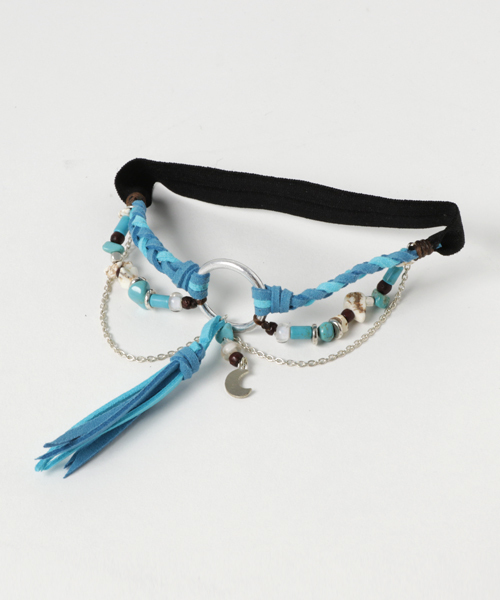 素肌をみせる季節におすすめ♪二の腕につけるアームブレスレットです。幅太のヘアタイを使用していますので腕にしっかりフィットします。動くたびに揺れるフリンジでフォークロアスタイル・フェスコーデにおすすめのアクセサリーです◎ ※こちらの商品は1点1点職人による手作りとなります。また天然素材を使用しております為、形や色合いなど若干異なる場合がございます。あらかじめご了承ください。 Amina Collection Co.,LTD.