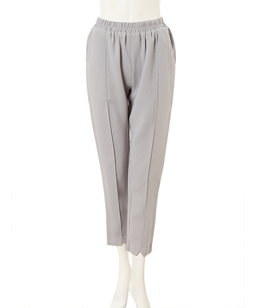 知的なムード漂うセンタープレスはクロップド丈で抜け感を-センタープレスで、スタイリッシュに仕上げたテーパードパンツ。腰回りと太もも部分は程よいゆとりで穿き心地も良く、裾に向けてスッキリと細めに仕上げたフォルムは、女性らしいスタイルを叶えます。フラットシューズからヒールパンプスまで、足元のアレンジが自在に楽しめるのも嬉しい。