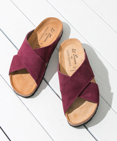 【EL TIERRA×URBAN RESEARCH】 メゾンブランドのOEMなども請け負うスペインのファクトリーブランドへ別注したサンダル。 強化ラバーのタフなアウトソールと、履くごとに足型に馴染んでいくコルクのインソールが、疲れにくく快適な履き心地を生み出します。 クロスタイプのカラースウェードアッパーが、 スポーツサンダルとは一線を画する上品な存在感を持つ一足です。 ※表記サイズは目安です。生産国やデザインによってサイズが異なりますので、採寸表の実寸サイズをご参照ください。 ※この商品は、革製品独特の染色技法を採用しております。 そのため、1点1点サイズや風合いの仕上がりが多少異なります。独特の雰囲気をお楽しみください。 また、摩擦や汗や雨などで濡れた時は変色することがありますので、充分にご注意ください。 ※その他お取り扱いに関しましては、商品に付属のアテンションタグをご確認の上、充分ご注意ください。