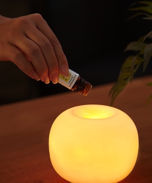 しっとりした質感が魅力の陶製アロマライト。上部にアロマオイルをたらして、ライトをつけると温められて香りが広がります。丸くてかわいいインテリアライトとしてもおすすめ。火を使わない電気式なので安心です。 電源:AC電源 付属品:電球(口金E12/10W)