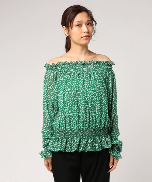 今季トレンドのオフショルダーブラウスは、ネック周りにシャーリングを施しているので オフショルとしてはもちろん、スタンダードなブラウスとしても使える2WAY仕様☆ ※裏地あり