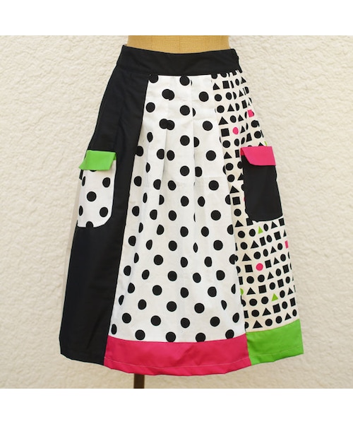 【ご注文後 10日~2週間で発送】 ◆サイズ 着丈67cmウエスト68~76cm裾190cm ◆商品説明 3種類の柄生地と生地に使われている、黒・緑・桃の無地生地で切り替えを楽しんだ個性的なスカートです♪ 生地に入っているカラーを散らして使っているので、うるさくなりません^^ デザインが可愛くシンプルなトップスでも十分オシャレを楽しめそうですね♪ 上質な日本製の綿100%の生地を使用しております。 ウエスト部分にはゴムが入っている為お好きな位置で調整して履いて頂けます。 サイドジップが付いているのでストレスなく着用が可能です。 また、裏地がついており履き心地もとても良いです。 独特な切り替えを持つこちらのスカートは、その日のトップスに合わせてどの面を前にして着用するか自由自在に変更出来て色んなコーディネートを楽しめる一枚です。 トレンドに左右されないデザインなのでいつでも、お好きな時に着用できるおススメの逸品です。 ※雲柄の色合いが若干変更になる場合がございます。※ 【MADE IN NIPPON】 NIRAME.COの洋服は 熟練の縫製職人が1着を1人で仕上げております。 縫製職人:nakayama ◆素材:表地 綿100% 裏地 キュプラ100% ※なるべく管理しておりますが、実店舗と平行しておりますので、在庫がない場合もございます。ご了承ください。 在庫がない商品も、作品によっては再制作していただけるものもございます。お気軽にお問い合わせくださいませ* ご購入前に必ずご確認ください この製品は、すべて手作業で仕上げておりますのでサイズに関しては、物により若干の差がございます。表記サイズはあくまでも目安として御理解下さい。 色目に関しては、お客様のご覧頂いているパソコンの環境等によっても実際の商品と多少異なる場合がございますので予めご了承下さい。 【生地と縫製について】 NIRAME.COのアイテムは、すべて日本製の生地を使用しておりどのアイテムも長く着用してもらえるようなものを選んでおります。また縫製は信頼のおける日本の職人が、裁断から仕上げまで1人で担当致します。その為工場の様に大量にはお作り出来ませんが、どのアイテムも思いのこもった逸品です。 【在庫なしアイテムとサイズ変更について】 現在すぐにお届け出来るアイテムが無い場合は、ご注文後あなたの為に1から職人がお作り致します。その為、発送までに約10日~2週間程お時間を頂きます。再生産の場合は、既存のサイズ(XS、S、M、L)などに関しては金額に変更はございません。 もし、お好みで着丈を伸ばしたいやもっと大きいサイズが欲しい等要望があれば以下のリンクよりお直しサービスを御利用ください。 http://nirameco.net/items/548d09fa86b188d138002f3c 【メールでのお問合せについて】 下にある『このアイテムについて問い合わせる』のボタンをクリック後、お名前とメールアドレス、お問合せ内容をご記入下さい。その場合、gmail.comからのドメイン指定の解除をお願い致します。(電話番号を記入頂ければ、もしメールが送信できない場合はお電話を差し上げます) 【LINE@でのお問合せ】 LINE ID⇒@bgc6811cを検索すると、NIRAME.COの公式アカウントを見つける事が出来ます。友達追加後トークで1対1でのやりとりが可能です。写真など細かくやりとりが出来ますのでより詳しく内容をお話しする事が可能です。