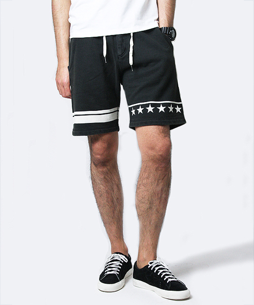 JACKROSEから、スタープリントの入ったショーツが登場!! 今期イチオシのスタープリントを裾部分に施したショーツ。ウエスト部分には紐が付いており調整が可能。スウェット生地を採用したことで動きやすく、履き心地抜群。ブラックはカジュアルからストリートスタイルまで、ジーンスのようなカラー加工のインディゴ、サックスはデニムを穿く感覚でトップスをあわせることもができる万能アイテム。