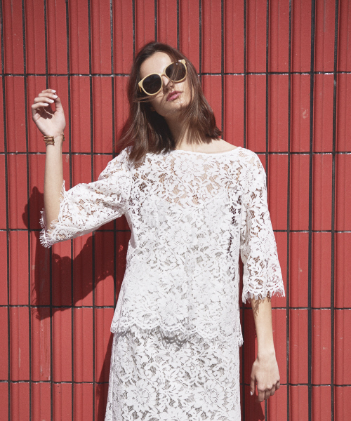 透け感のあるレースブラウスで夏らしくも大人顔の印象に。インナーのキャミソール付きです。同素材のスカートで落ち着いた大人のスタイリングからトレンドのワードデニムでカジュアルも楽しめるアイテムです。