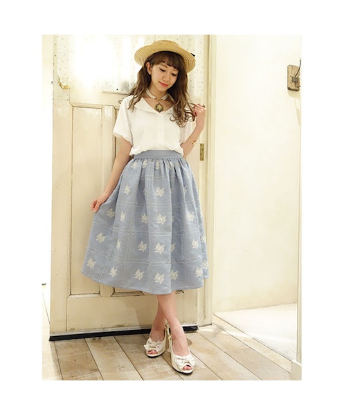 タイルのような規則的に並んだ刺繍がクラシカルムード満点なスカート。 織り感のあるリネンライクな素材感と涼し気なカラーがシーズンらしい印象です。 ウエストに寄せられたタックがほどよく広がる美しいシルエットを叶えてくれるポイント♪ お揃いのバッグを合わせれば、いつもより特別感のあるコーデが完成します。 モデル身長: 150cm MATERIAL: 表地 レーヨン75%ナイロン18%ポリエステル7% 刺繍上糸 ポリエステル100% 刺繍下糸 ポリエステル100% 裏地 ポリエステル100% made in China サイズウエスト 脇丈 Free 74〜63.5cm68.5cm 【ご注文確定前に必ずご確認ください】 いつもF i.n.tをご愛顧頂きありがとうございます。 STORESの在庫掲載については、F i.n.t代官山店と在庫を共有しているため、在庫更新のタイミングにより在庫切れの場合やお届けまでお時間を頂戴してしまう可能性がございます。 商品を他店舗よりお取り寄せの場合には、通常よりお届けまでにお時間がかかる場合がございますので、恐れ入りますが予めご了承ください。