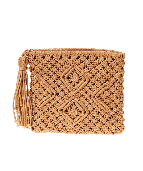 こなれ感たっぷりプラスワンアイテムのクラッチバッグ ネイティブなムード漂う、鍵編みのクラッチバッグ。コーディネートしやすいワントーンカラーでありながらも、繊細な編み柄が映え、存在感もさりげなく主張します。揺らめくファスナートップのタッセルも、とてもオシャレです。