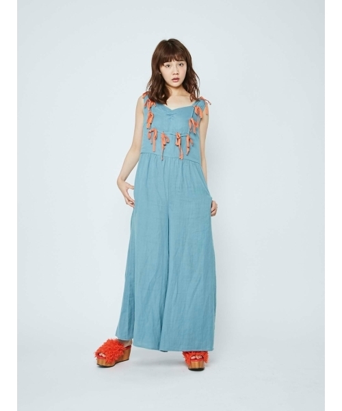1枚で stylingが 完成出来ちゃう オールインワン。 胸元には たっぷりの りぼんを 添えて、 かわいらしさと casualさの 良いとこどり。