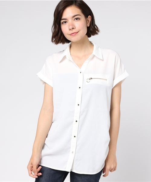 ざっくり着て様になるゆるシルエットのシャツは、リングジップ付きでひと味違ったデザインに!サイドにはタックを入れ、シルエットにニュアンスをつけました。衿を後ろに抜いて今年らしく着るのもおすすめですよ!