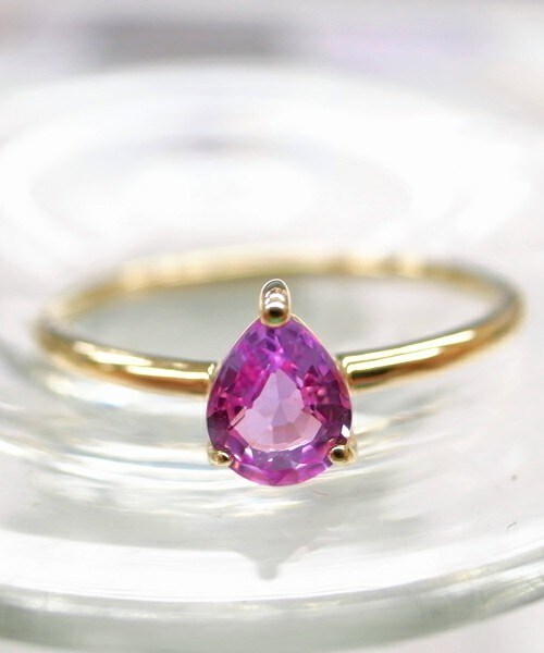 【鮮やかなピンクサファイア】 ペアシェイプリング 貴重な宝石を使用して、石の良さを引き出す”トロイメライ”コレクションに新作が展開 鮮やかな濃いピンクのサファイアのシンプルなリングです。 デザインは極力シンプルにして石を目立たせる様にしております。 石の形もペア(洋ナシ)型なので、存在感のあるアイテムとなっております。