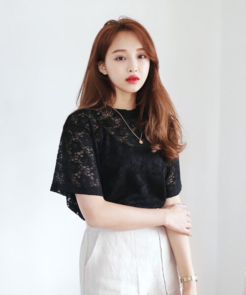 ほんのりと肌を透かせるレース仕立てで色っぽいムード漂うTシャツ♡総レースになっているから同色のキャミやチューブトップと合わせるのがおすすめ!キャミワンピのインナーとしても着回ししやすいですよ^^ ※WEARに記載してある金額と、DHOLIC通販サイトに記載してある金額にシステム都合上、稀に誤差が生じます。正しい金額はDHOLIC通販サイトに記載された金額です。