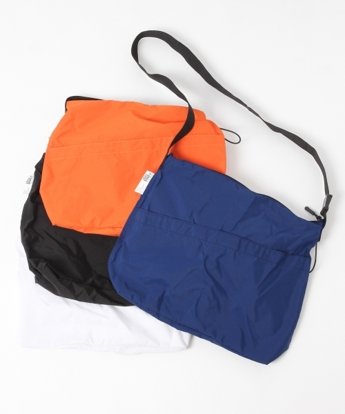 プラス1の機能が充実☆薄手のナイロン生地を使った、イージーショルダーは、ななめ掛けでも、肩掛けでも気負わずに使えるラフなショルダーバッグです。ベルトの下のに丸ゴムを付けていますので、キーホルダー等をつけたり暑くなって脱いだシャツを通しておくのにも使えます。使わないときはくるくると小さくたたみ、丸ゴムで留めておくこともできるのでコンパクトにまとまって場所も取らないのですっきりと保管しておけます。