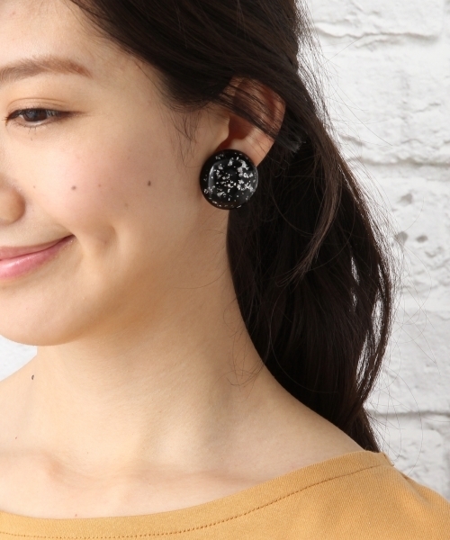 今季注目なボタン型シルエットのイヤークリップ。きらっとした存在感あるデザインで、涼しげに見えるのがポイント。 耳元が華やかな印象に♪ イヤークリップはピアスの穴が開いていない方にもお使いいただけるので、プレゼントにもおすすめです。