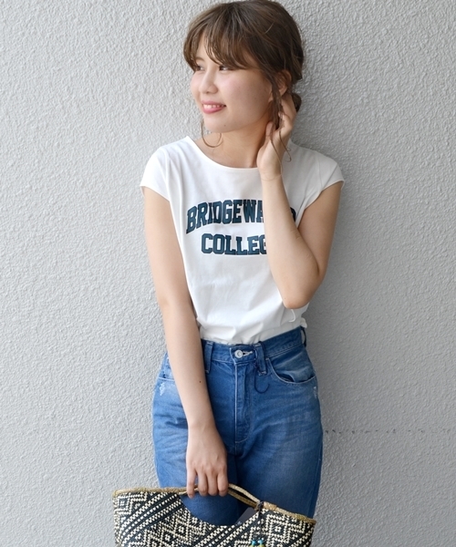 ロゴデザインが目を引くTシャツです。ボーイズライクになりがちなロゴデザインでも、フレンチスリーブが女性らしいシルエットを演出します。丈も長すぎず、今年らしいワイドパンツと合わせてもすっきりと着ていただけます。 ※製品の特性上、洗濯の後に縮みや型崩れ、斜行(ねじれ)が生じますのでご留意ください。 ※汗や雨等の水分や摩擦により、他のものに色移りしますので、淡色衣類との組み合わせは避けてください。 ※末永く愛用頂く為に、アテンションタグ・洗濯ネームを必ずご確認の上、着用又はお取り扱い下さい。