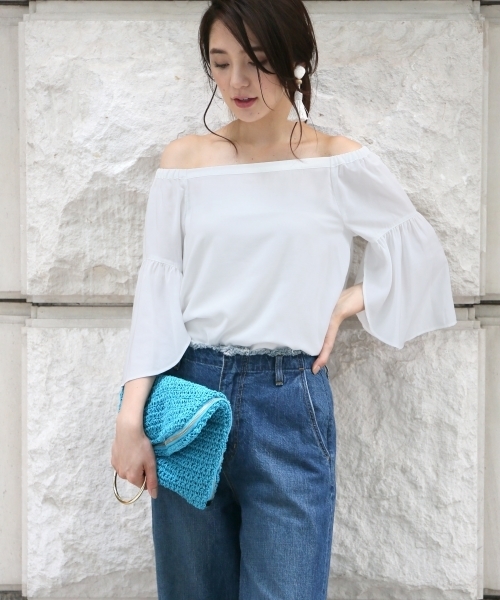 夏らしい、柔らかくさらっとした着心地の良い素材を使用したオフショルブラウスが新着。袖の内側に花びらのようなスリットが入ったフレアスリーブは、気になる二の腕の華奢見せができるうえに、これからの暑い時期に風通しがあり着心地も◎ スクエアネックにもオフショルにも着られる首回りのデザインはON/OFF着回しが可能で、この夏のお気に入りの1着になりそう。 ふんわりデザインなので、ボトムスにはデニムやワイドパンツ、スカート合わせのときはインしてもかわいく着こなせます。 《インフォメーション》 ◆商品のお気に入り登録 完売していても再入荷時に再入荷通知を受け取ることができますので、是非ご登録ください♪ ◆ブランドのお気に入り登録 新商品や再入荷などの情報を受け取ることができますので、是非ご登録ください♪ 公式Instagram >>> 【@apartbylowrys 】 おすすめアイテムや新作情報、" ショップニュース "を更新中! ぜひフォローしてみてくださいね^^