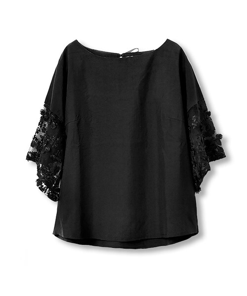 透け感が上品なチュール生地に、花の刺繍を施すことでガーリーさとトレンド感を引き出してくれます。 ふんわりと広がるフレア袖が今年らしいシルエットで、気になる二の腕もカバーしつつ、スタイリングのアクセントに。 身頃の生地はサラッと着心地もよく、シワになりにくいのも◎。 デニムやロングスカートなどのワイドボトム合わせがオススメです!