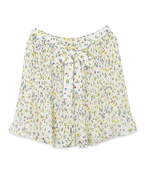 カラフルで甘すぎない花柄を細かくプリーツにする事で、大人めな方にもチャレンジしやすい花柄ショートパンツに仕上げました。 裾はプリーツからフレアになっており、繊細なプリーツの動きと、フレアのやわらかな動きの両方を楽しめます! 裏地は程よい長さに抑えて、フレア部分の透け感を強調しました。 白地にカラフルなお花が女の子らしさ満点のWhiteと、トレンドのちょっと辛口なBlackの2色展開です。