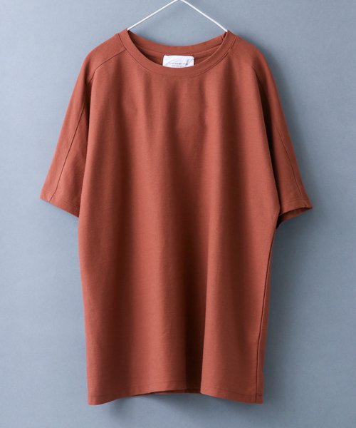 コットンポリエステルの夏場に適した生地で仕立てたドルマンスリーブTシャツ。 ツイルのような斜めの織りが見える生地で、特有のドレープがこなれた印象を演出してくれます。 メンズらしくもたつきの少ないドルマンスリーブを採用。 夏にこそ着たい、大人のTシャツとはまさにこれ。