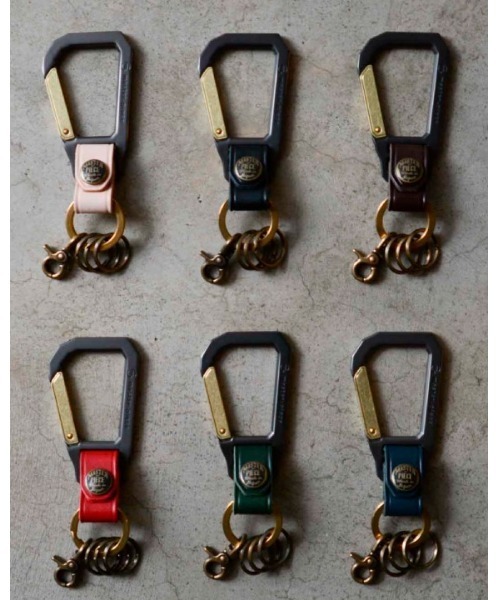master-piece( マスターピース)のCARABINERシリーズのキーホルダー。本体にはブラック×ゴールドの配色で仕上げたオリジナルのカラビナを使用しています。 付属の革には北米産の上質なデイリーステアを、クロムを使わず100%タンニンで鞣したエコレザーを使用しています。 色がついている物に関しては透明感を残す為に極力薄く染料を乗せて仕上げています。 オリジナルのホックをポイントに、2重リングなどは真鍮金具を使用することで重厚感を出しています。 顔料を一切使用せず、レザー本来の質感をいかすため染料を多く使った仕上げを行なっておりますので、若干の色ブレがございます。 また素上げの特性上、変退色は避ける事ができませんのでご了承ください。雨や水に濡れますとシミや変色の原因となりますので、濡れてしまった場合は速やかに水気を取り除いてください。