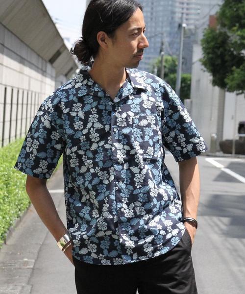 華やかにグレードUP 【今期マストな開襟シャツ】 ハイビスカスを描いた総柄プリントのショートスリーブシャツ。 ダークトーンに抑えているため、派手になり過ぎずタウンユースにも最適な1枚です。 シンプルな無地のボトムを合わせた、プリント主役の着こなしがお勧めです。 店舗へお問い合わせの際は、全国のCOEN 各店舗まで下記の品名/品番をお申し付け下さい。 品名:EC ダークトロピカル S/SL 品番:7515-600-7012 メインモデル:身長173 B79 W77 H89 着:S 詳細モデル:身長181 B90 W65 H90 着:M