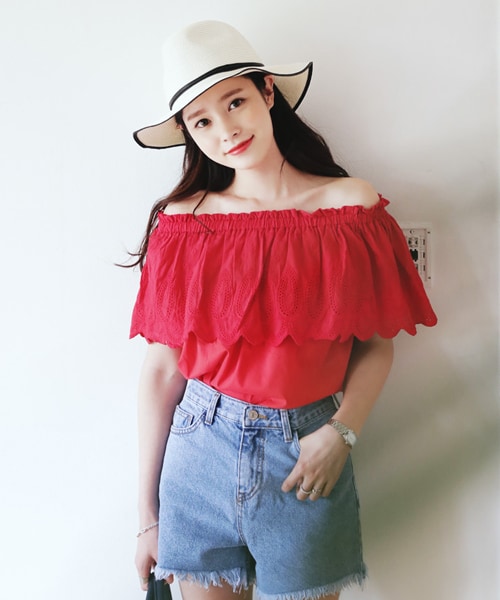 コーデを華やかに仕上げてくれるオフショルブラウス♡胸元のラッフル部分にはパンチングデザインで可愛らしいムードをプラス♡ワントーンでも華やかなデザインだからカジュアルなジーンズと合わせるだけでトレンドコーデの完成です^^ ※WEARに記載してある金額と、DHOLIC通販サイトに記載してある金額にシステム都合上、稀に誤差が生じます。正しい金額はDHOLIC通販サイトに記載された金額です。